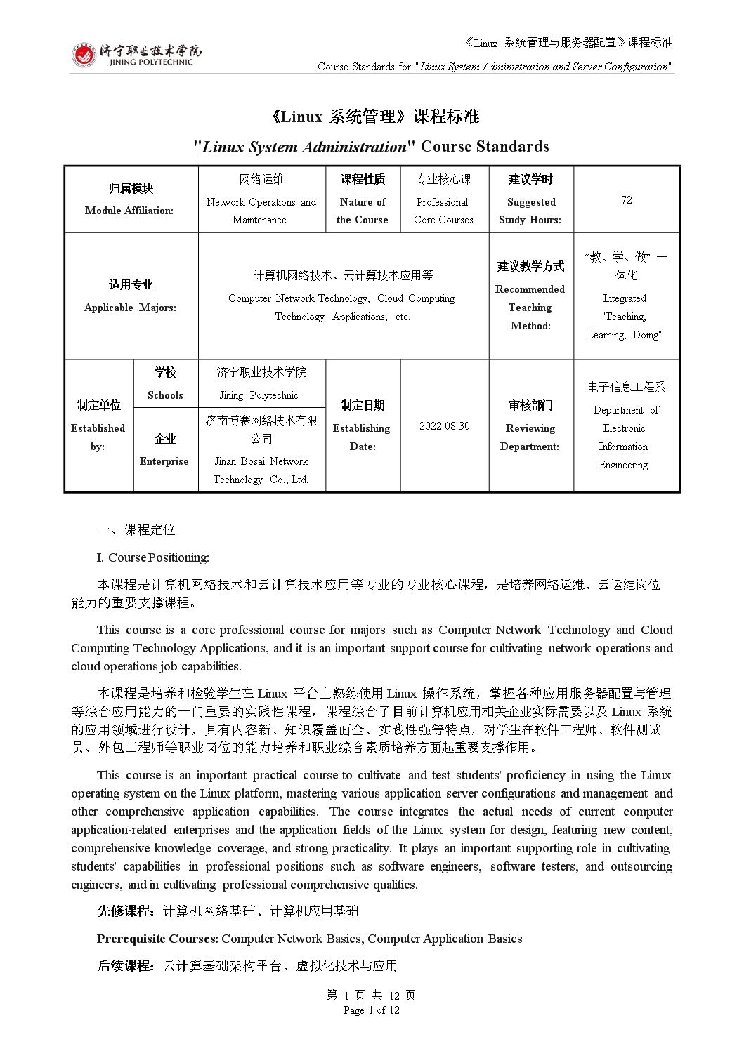 《Linux系统管理》课程标准CurriculumStandardofLinuxSystemAdministration