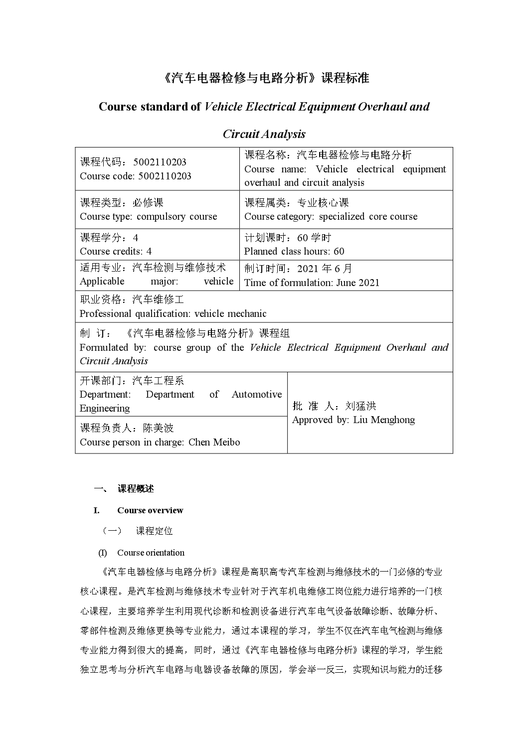《汽车电器检修与电路分析》课程标准CurriculumStandardofVehicleElectricalEquipmentOverhaulandCircuitAnalysis