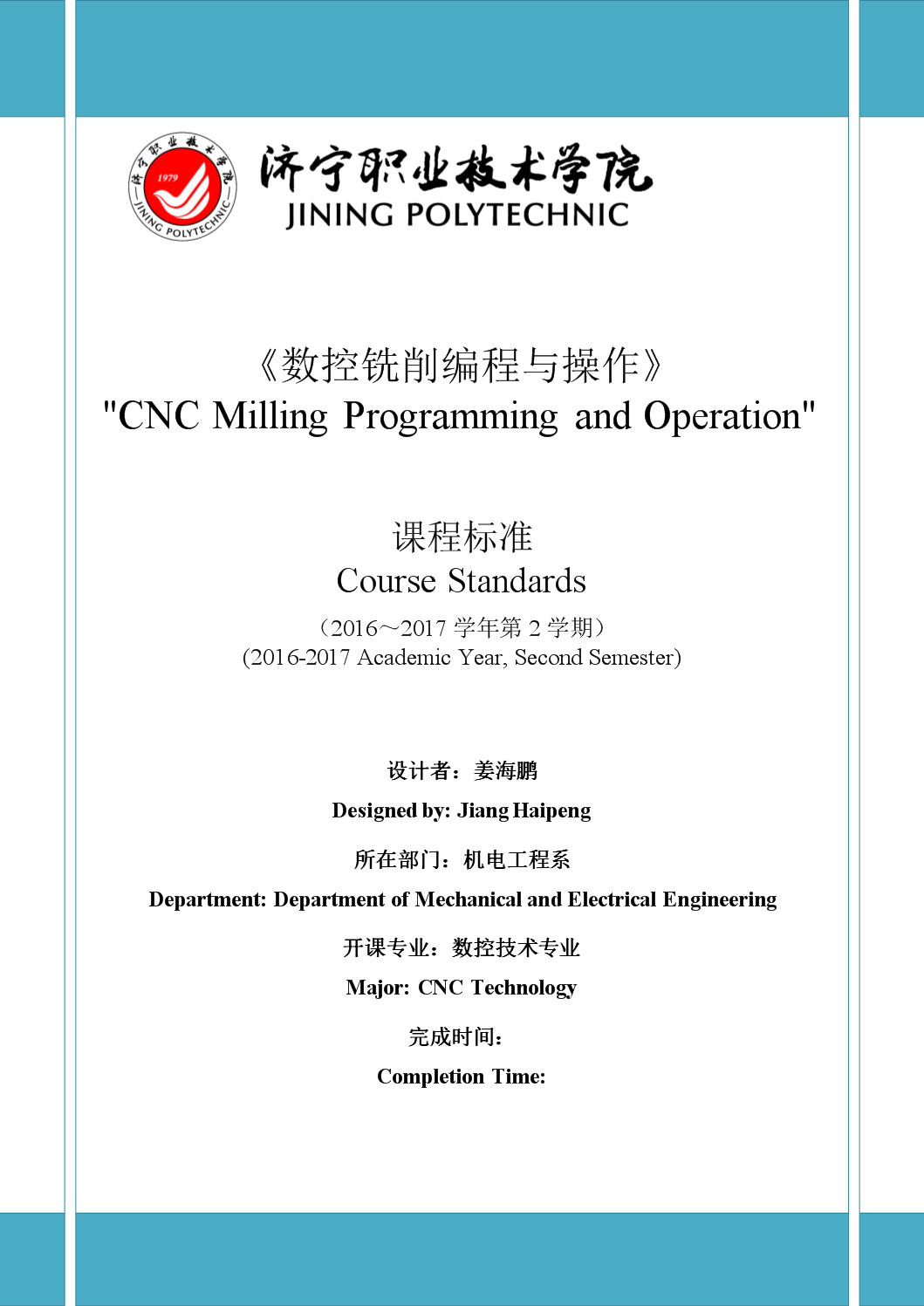 《数控铣削编程与操作》课程标准 Curriculum Standard of CNC Milling Programming and Operation