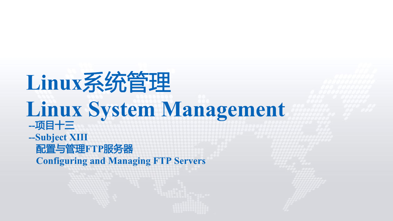 13.3配置与管理FTP服务器-3.配置Linux与Windows资源共享ConfiguringandManagingFTPServers-3SharingResourcesbetweenLinuxandWindows